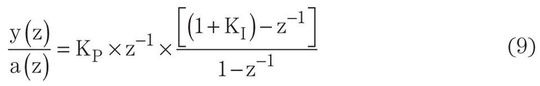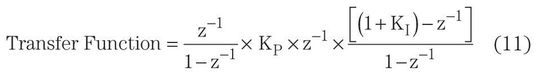 Die Übertragungsfunktion des PI-Regelkreises ist das Produkt der Gleichungen 9 und 10:
